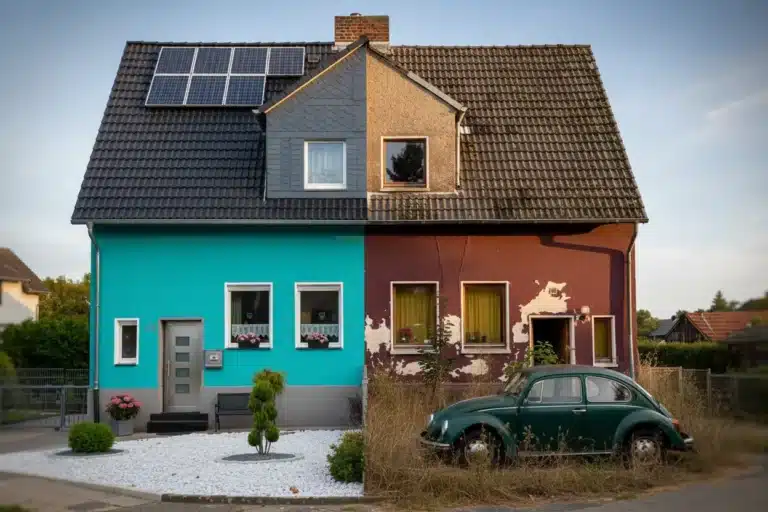 Nuance importante ! Ne tombez pas dans le piège de croire qu’on a scié une baraque en plein milieu, à la hache ou à la Dremel. On parle bien de deux maisons distinctes : les jumelles, mais chacune dotée de son identité, de son univers. Le terme allemand Doppelhaus signifie maison jumelée ; Doppelhaushälfte désigne tout simplement « une moitié » de cette entité, sans vouloir complexer les germanophones du dimanche.